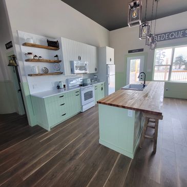 This spacious and open concept rental house has 3 beds and 2 bedrooms, a fully stocked kitchen and 1.5 bathrooms with a washer and dryer.