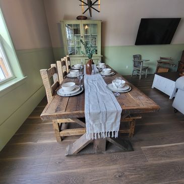 In the main part of the house, you discover a full kitchen ready to prepare your perfect meal. the dining room, which opens off the kitchen features a stunning kitchen table out of old barn boards ideal for celebrating with family and friends.